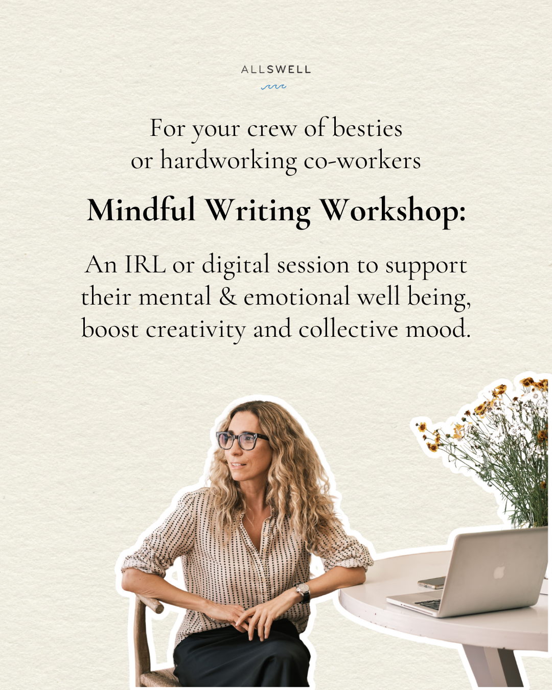 AllSwell is a health and wellness brand focused on the benefits of journaling. Founder Laura Rubin also works to build a strong community by leading live workshops, digital experiences, and 1:1 sessions.