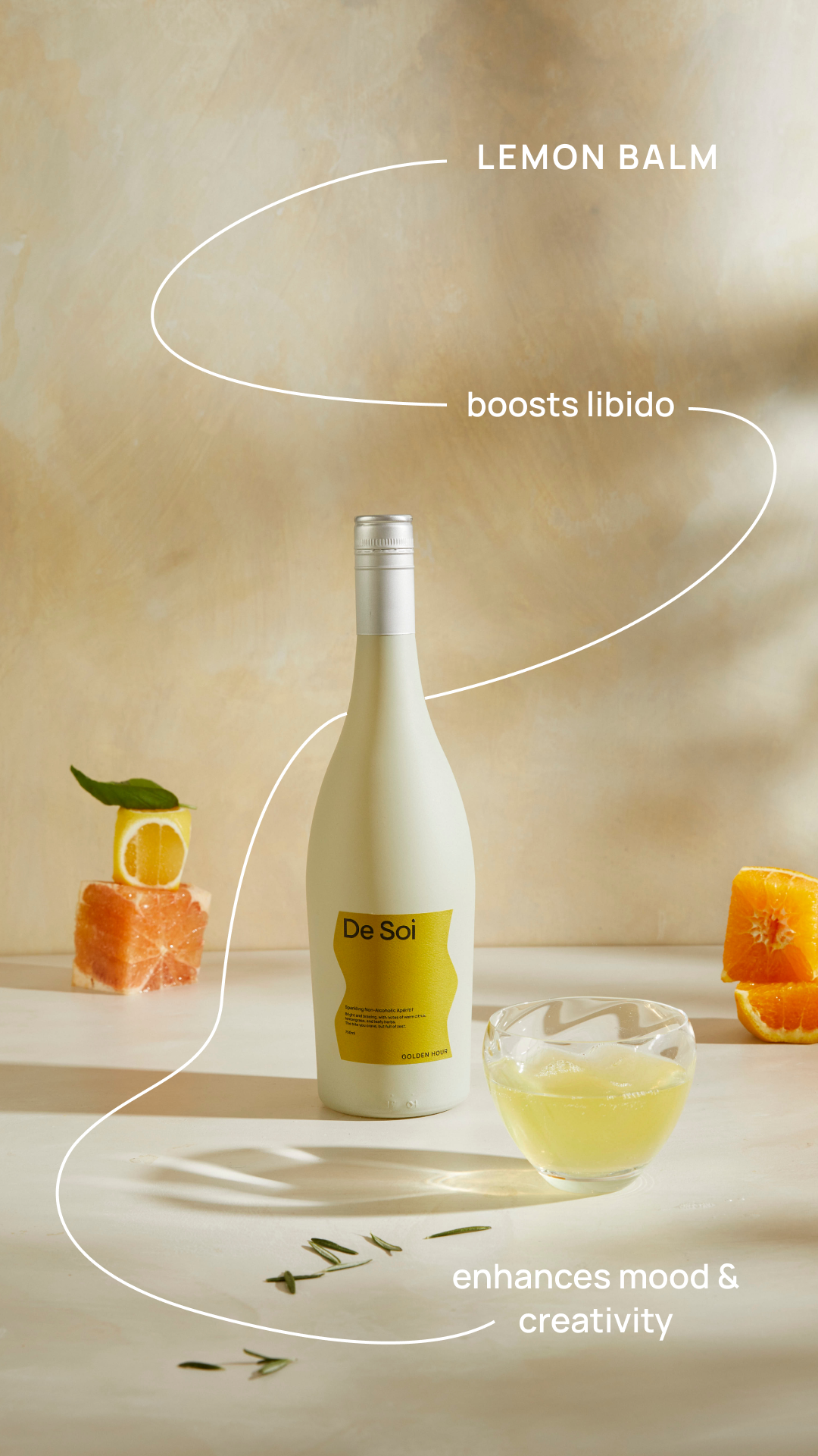 De Soi is a line of non-alcoholic apéritifs created with clean ingredients and feel-good adaptogens to help people rethink their relationship with alcohol and create a more beneficial drinking experience.